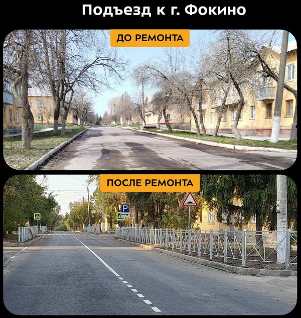 В 2024-м году в городе Фокино Брянской области в рамках реализации национального проекта «Безопасные качественнее дороги» капитально отремонтирован участок автодороги «Подъезд к г. Фокино» (от д.1 до д.15 по ул. Ленина). Его протяженность составила 400 м, об этом сообщает Управление автомобильных дорог Брянской области на своей странице в социальной сети Вконтакте.