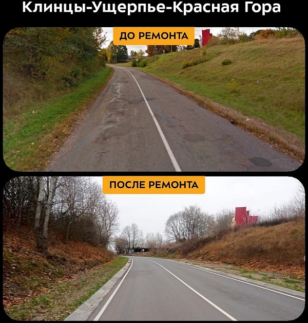Как стало известно, в прошлом году благодаря нацпроекту «Безопасные качественные дороги» в Клинцовском районе Брянской области отремонтировали участок автодороги «Клинцы — Ущерпье — Красная Гора». Его протяжённость составила 3 км.