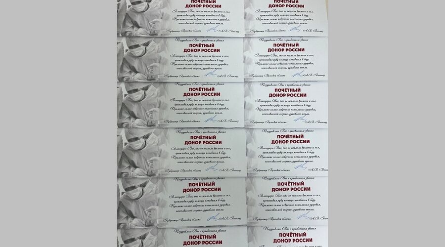 На Брянщине 12 жителей удостоены звания «Почётный донор России»