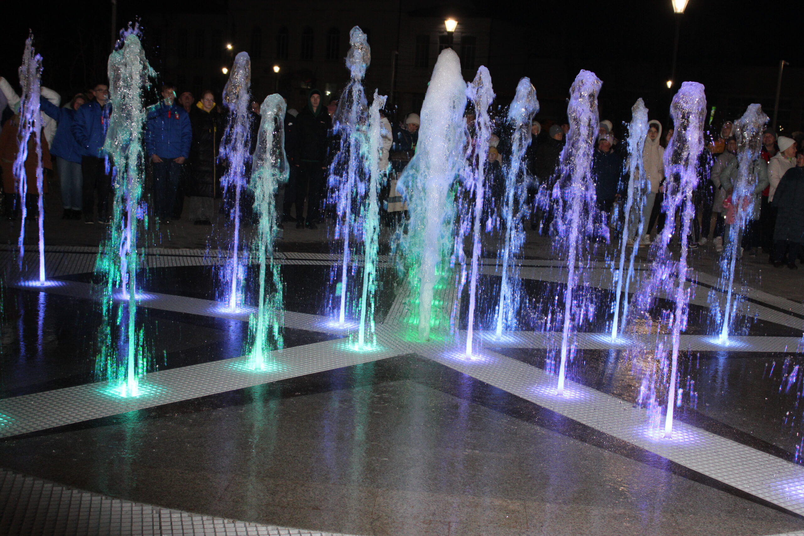 Кульминацией праздника стали радужные струи и эффектная подсветка водных композиций нового фонтана, который будет работать в будущем летнем сезоне.