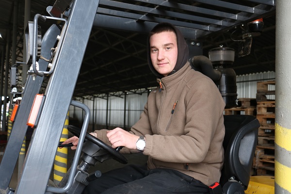 В настоящее время полным ходом идёт уборка картофеля, и Николай умело управляет доверенной ему техникой, перевозя в ангаре паллеты с клубнями. Также Николай уже два сезона работал на зерноуборочном комбайне.