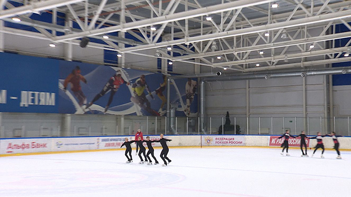 Команда по синхронному катанию «Аврора» репетирует новую короткую программу для Всероссийских соревнований в Екатеринбурге.