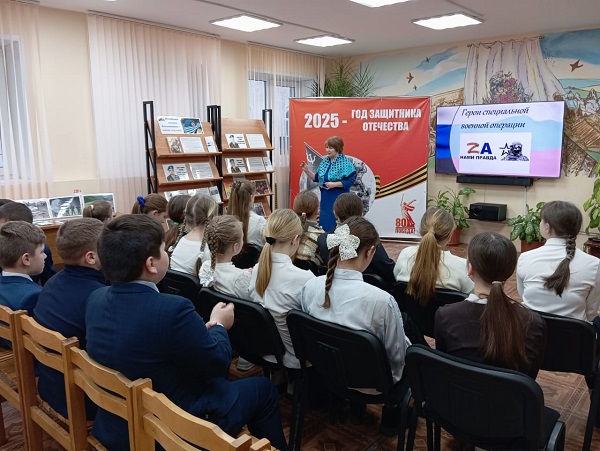 Он был посвящён Героям специальной военной операции. В центральной библиотеке г. Стародуба проходит череда мероприятий, посвящённых Году защитника Отечества и 80-летию Победы в Великой Отечественной войне. Постоянными участниками таких встреч являются школьники. Так, состоявшийся недавно Урок Мужества под названием «Участники специальной военной операции — Герои нашего времени» был посвящён бойцам СВО, которые сегодня являются примером для подрастающего поколения.