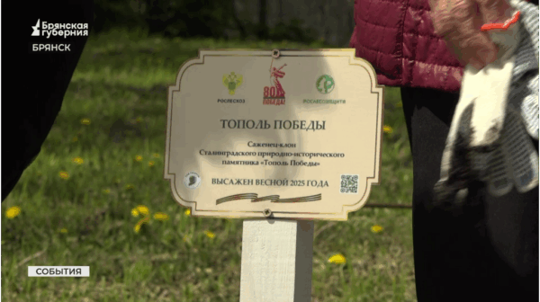 Как сообщает телеканал «Брянская губерния», саженец-клон «Тополя Победы» из Сталинграда высадили в Брянске. В сюжете рассказывается, что этот тополь видел страшнейшую в истории Сталинградскую битву и уцелел. Таким образом он стал символом стойкости и непобедимости нашего народа. Теперь тополь Победы, а точнее клон этого легендарного дерева, есть и в областном центре. Подробнее – в видеосюжете телеканала «Брянская губерния».