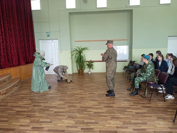 Затем воспитанники клуба показали ребятам мастер-класс по разборке-сборке автомата Калашникова, снаряжению магазина патронами, надеванию костюмов химзащиты и противогазов, изготовку к бою, а также навыки оказания первой медицинской помощи.
