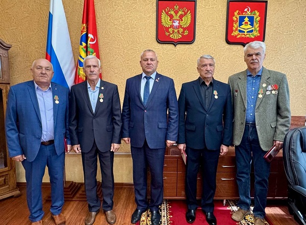 Председатель областной Думы Валентин Суббот вручил медали «80 лет освобождения Брянской области от немецко-фашистских захватчиков» членам областной общественной организации «Инвалидов войн и военных конфликтов».